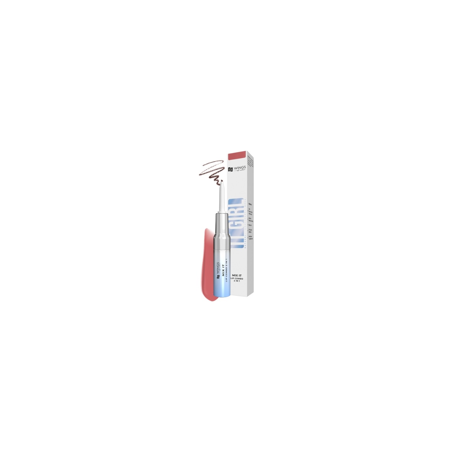 AA Wings of Color It Girl Mix It 2w1 płynny Błyszczyk + Konturówka do ust /Dirty Rose/ 7,5 g + 0,2 g