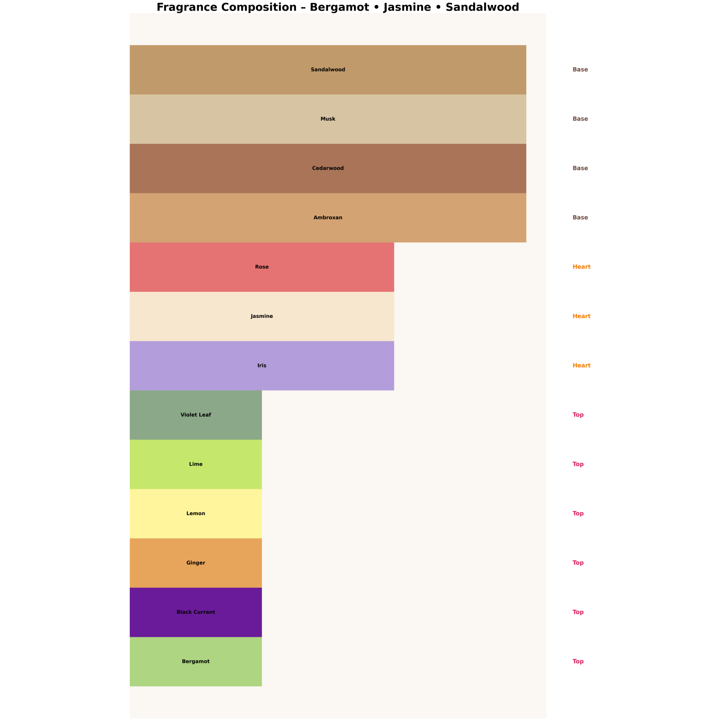 ✔ Głowa: Bergamotka, Cytryna, Limonka, Imbir, Czarna Porzeczka, Liście Fiołka