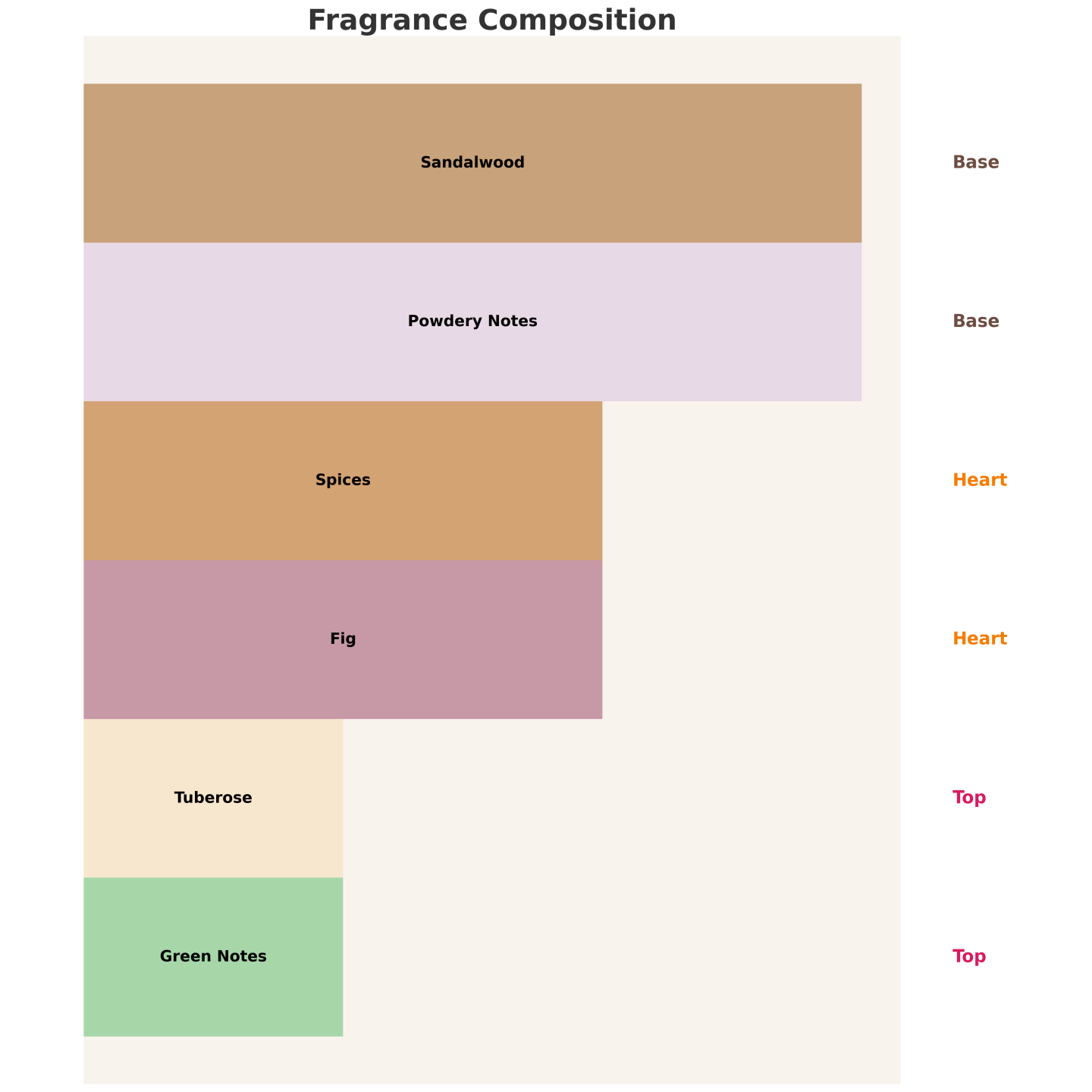 It is a fresh, elegant fruity-floral composition with green accords, tuberose, fig and a powdery finish.