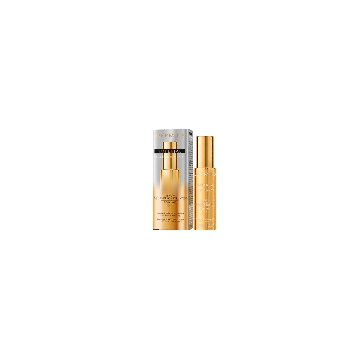 IMPERIAL Dermika Multi-Reconstructor Serum is a concentrated treatment for the face, neck, and décolleté, designed for skin requiring intensive regeneration, firming, and quality improvement. Its modern formula, based on biotechnology, works on multiple levels, supporting natural regenerative processes both during the day and during nighttime renewal. Its light, quickly si consistency makes the serum an excellent base for makeup and an intensive overnight treatment. Skin becomes firmer, denser, and visibly smoother, giving it a healthy, rested, fresh appearance.