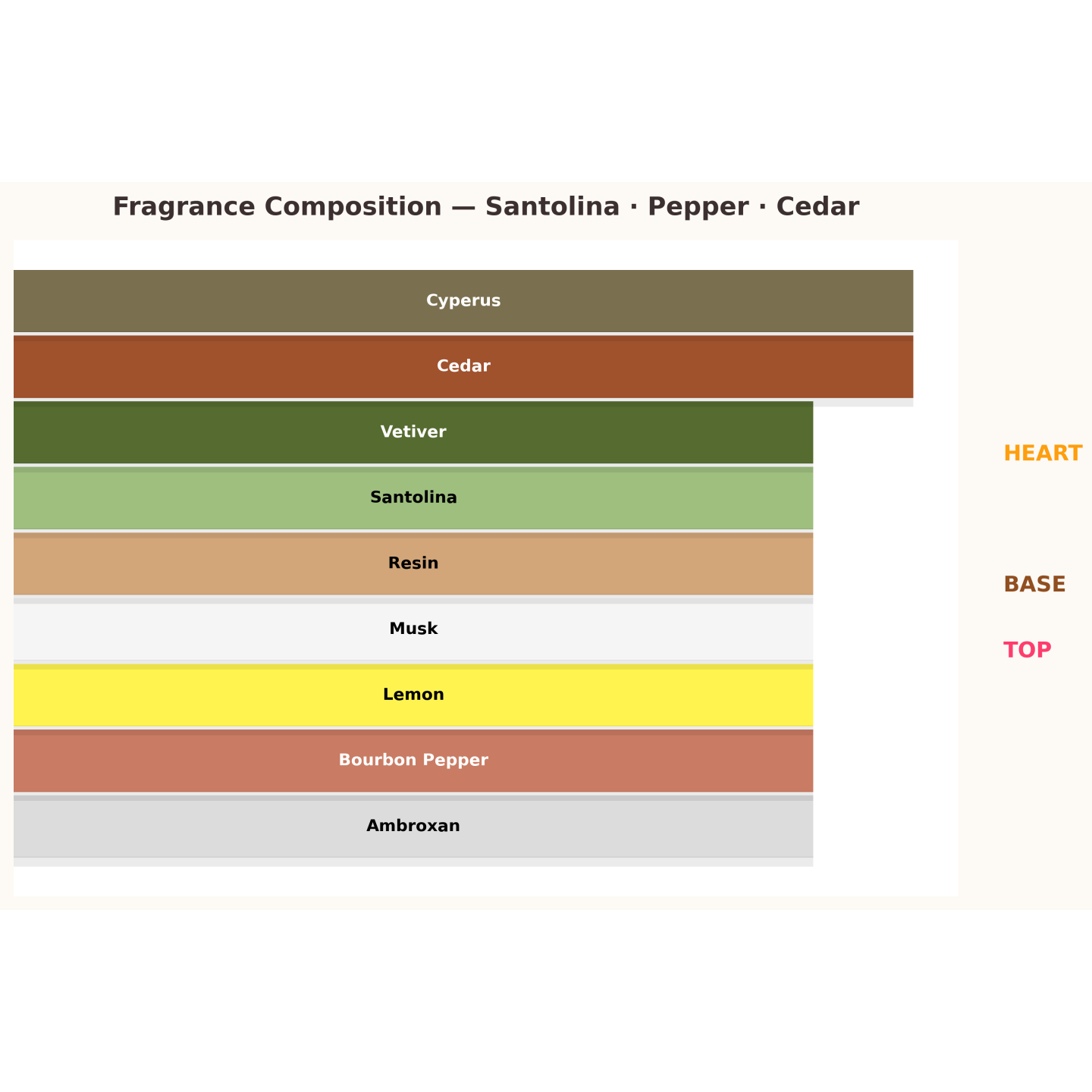It is a distinctive, woody-aromatic composition with the noticeable freshness of citrus fruits and the warmth of resins.