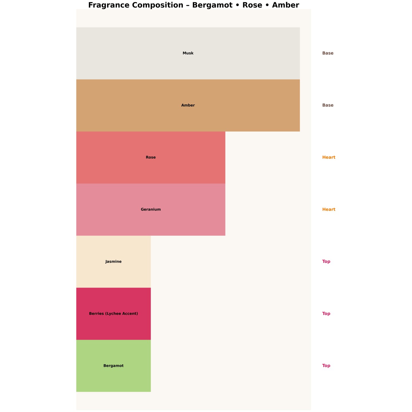 ✔ Top: Bergamot, Jasmine, Berries (with a touch of lychee)