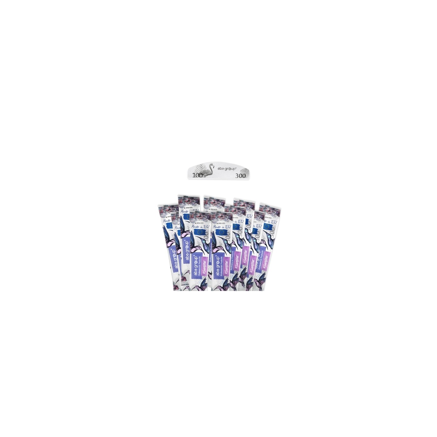 Safe Package Aba Group Mini Crescent Polisher 100/300 is a single-package, precise polisher for matting and smoothing the nail plate, ideal for salon work and preparing nails for hybrid manicure