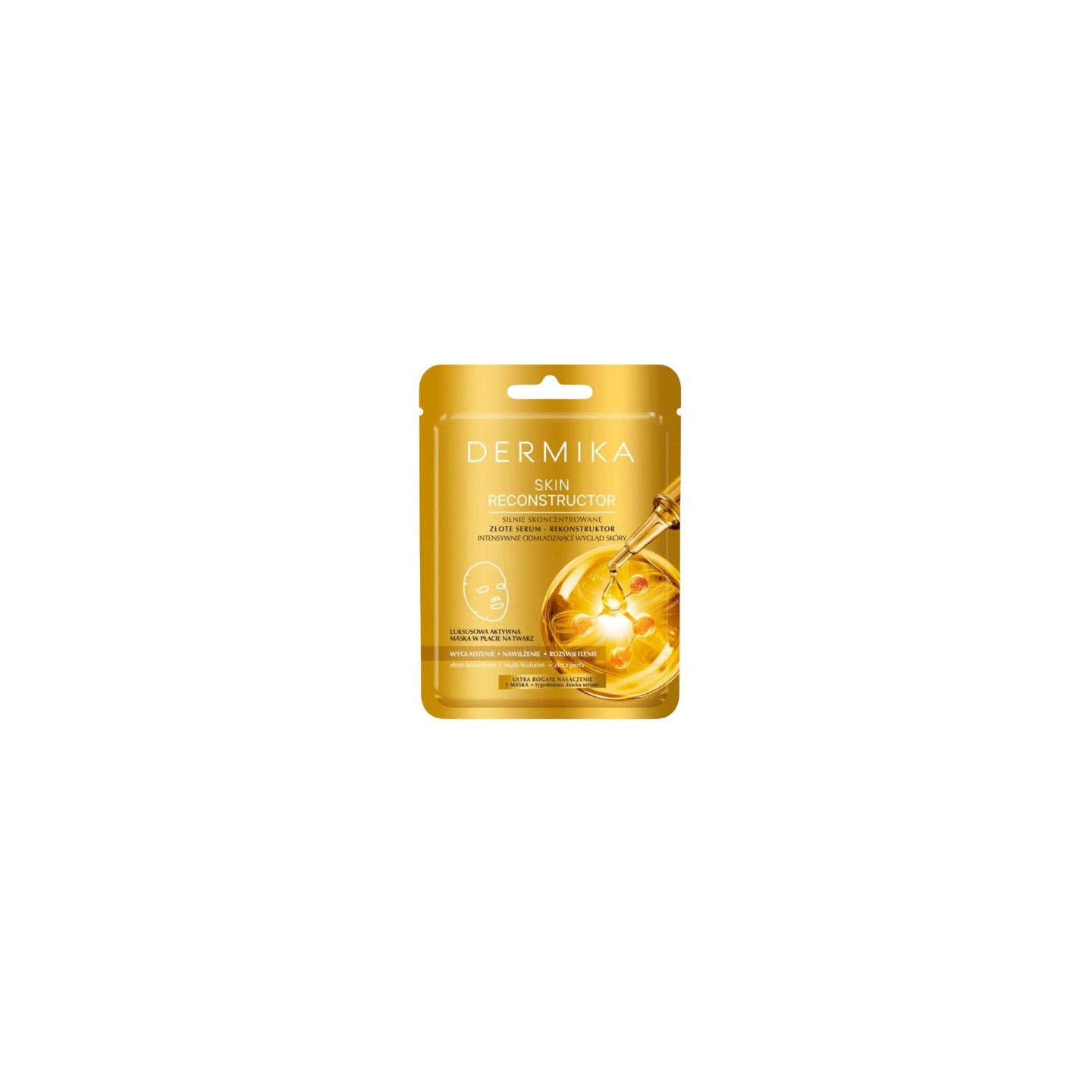 An exclusive sheet mask infused with a highly concentrated gold serum, designed to intensely rejuvenate, moisturize, and brighten the skin. It acts as a luxurious, one-of-a-kind treatment that quickly improves the complexion's appearance and restores its vitality. The advanced formula combines colloidal gold, the Multi-Hyaluron complex, and gold pearl to create a multifaceted treatment. After use, skin si visibly smoother, firmer, and full of a natural glow, while skin tone appears even and fresh. The product's vegan formula is suitable for vegans and those who choose conscious, luxurious skincare.