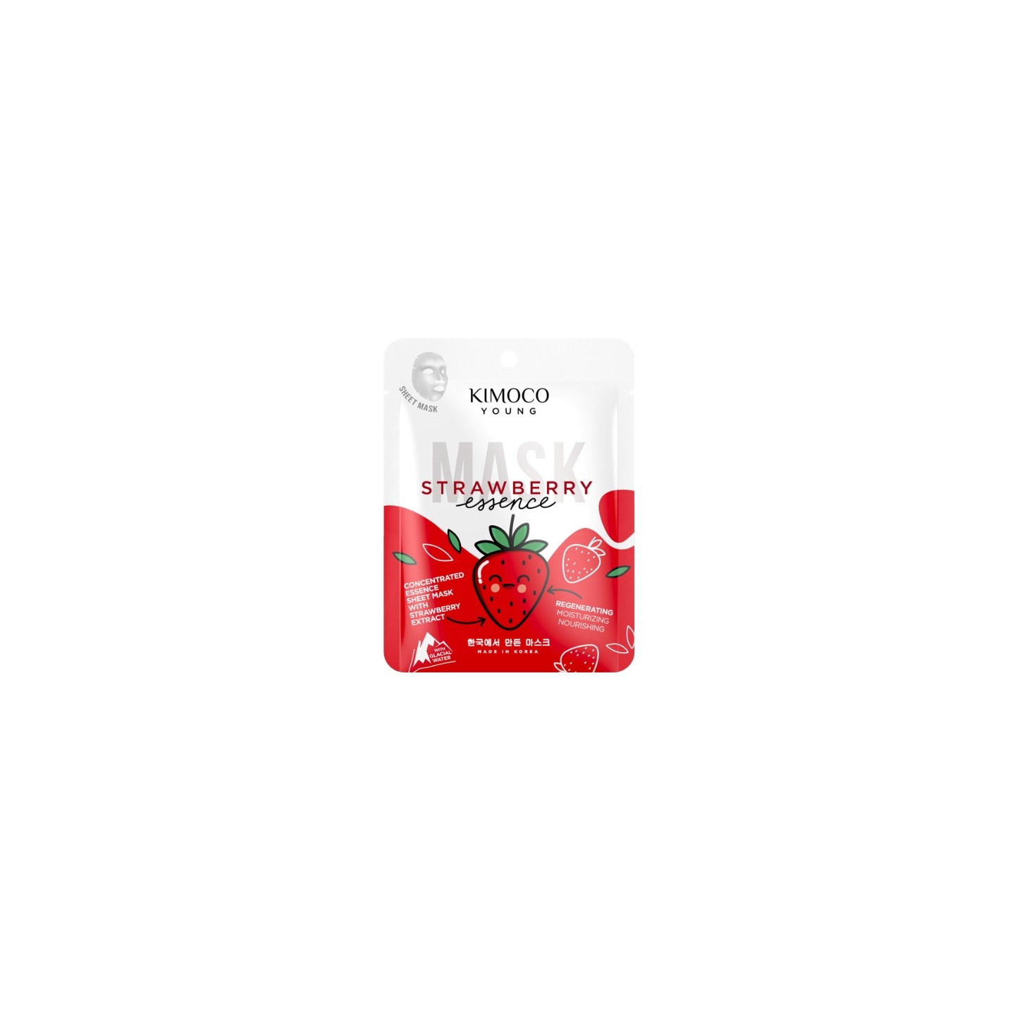 This sheet mask with strawberry extract and glacier water is a Korean-inspired skincare product that helps quickly improve skin condition and restore its healthy glow. The sheet mask is infused with an essence rich in active ingredients with regenerating and moisturizing properties. The formula contains strawberry extract, which supports skin regeneration and gives it a fresh and radiant appearance. Combined with raspberry, blueberry, and other forest fruit extracts, it provides antioxidant and nourishing properties. Hyaluronic acid and betaine help maintain the skin's proper moisture level, si it soft, smooth, and pleasant to the touch. The mask adheres well to the face, allowing for effective absorption of the active ingredients and comfortable application – even during daily activities. Regular use of the mask helps improve skin condition, supports its regeneration, and gives the complexion a healthy, fresh appearance.