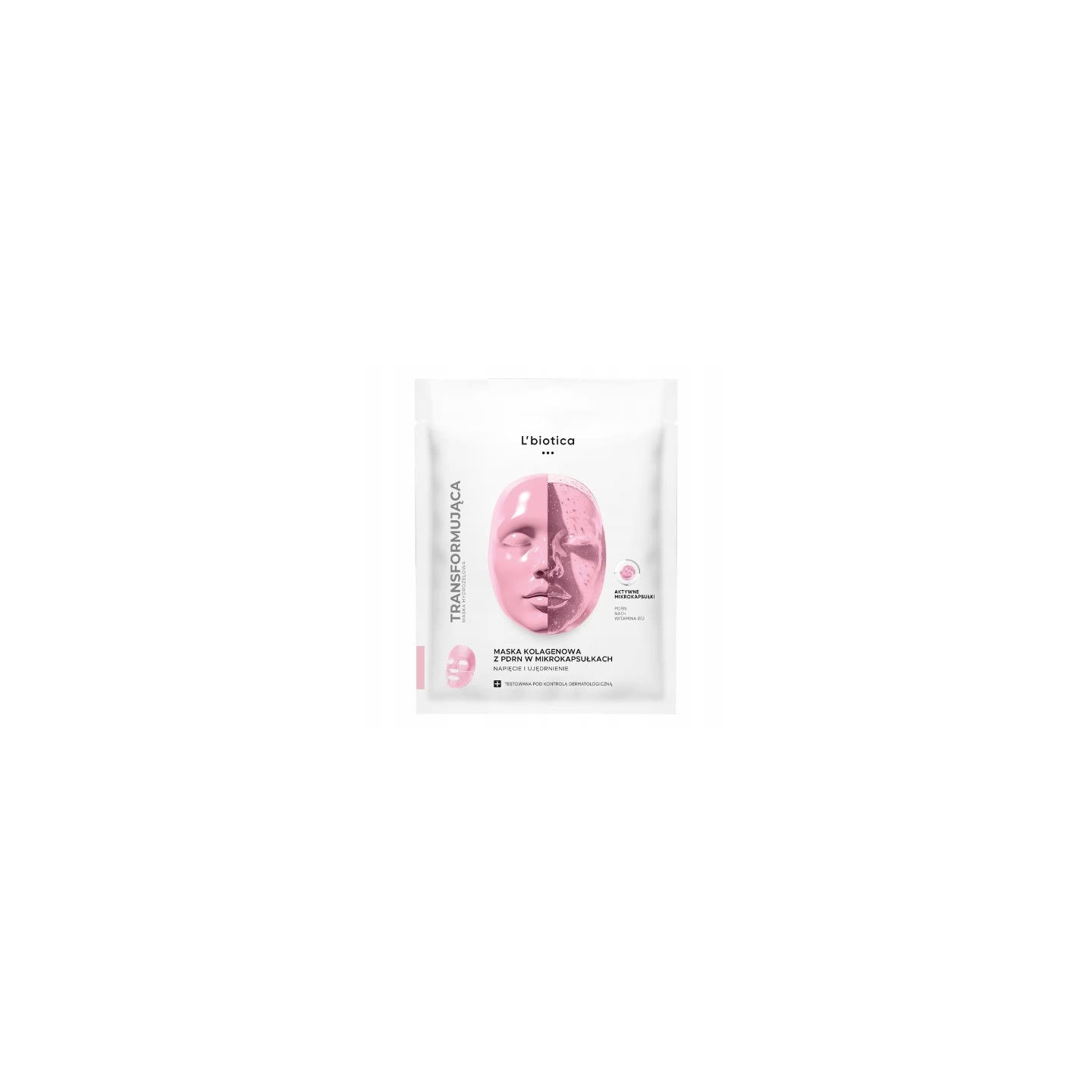 The Transforming Collagen Mask with PDRN is an innovative cosmetic designed for skin lacking firmness, elasticity, and radiance. Thanks to MicroCapsBoost technology, active ingredients are gradually released, increasing their effectiveness and allowing them to work deep within the skin. Hydro formula si perfectly to the face and becomes transparent during application, indicating the ingredients' activation and absorption. The mask works on multiple levels – supporting regeneration, improving skin firmness, and restoring a healthy, radiant appearance. The PDRN (DNA fragments) contained in the formula stimulates skin's repair processes and supports cell renewal. NAD+ has a revitalizing effect, improving skin elasticity and resilience, while vitamin B12 supports even skin tone and gives the complexion a healthy appearance. Additionally, hyaluronic acid and collagen intensely moisturize, smooth, and improve skin firmness. The mask is perfect as a quick anti-aging treatment before an important event or as a regenerating skincare regimen.