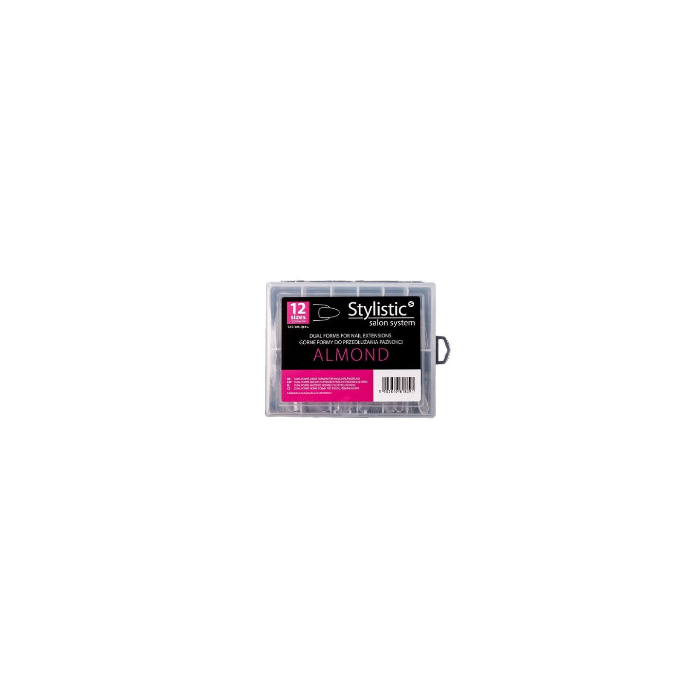 Stylistic's transparent Dual Form forms are a convenient alternative to traditional nail extension forms. They make nail construction much faster, and the final result more precise and repeatable. The forms allow you to easily create the perfect framework for your design, ensuring that all nails have the same shape and proportions. Made of flexible and ego material, the forms are resistant to damage during application and removal. The transparent design allows easy penetration of UV/ LED light, ensuring even and effective curing of the building material. Dual Forms perfectly si to the natural nail plate. Each form type is available in four sizes, allowing for a perfect width adjustment to the nail and increasing comfort. The product is available in three popular styling shapes: almond, ballerina , and square , allowing you to customize the form to your preferred manicure style.