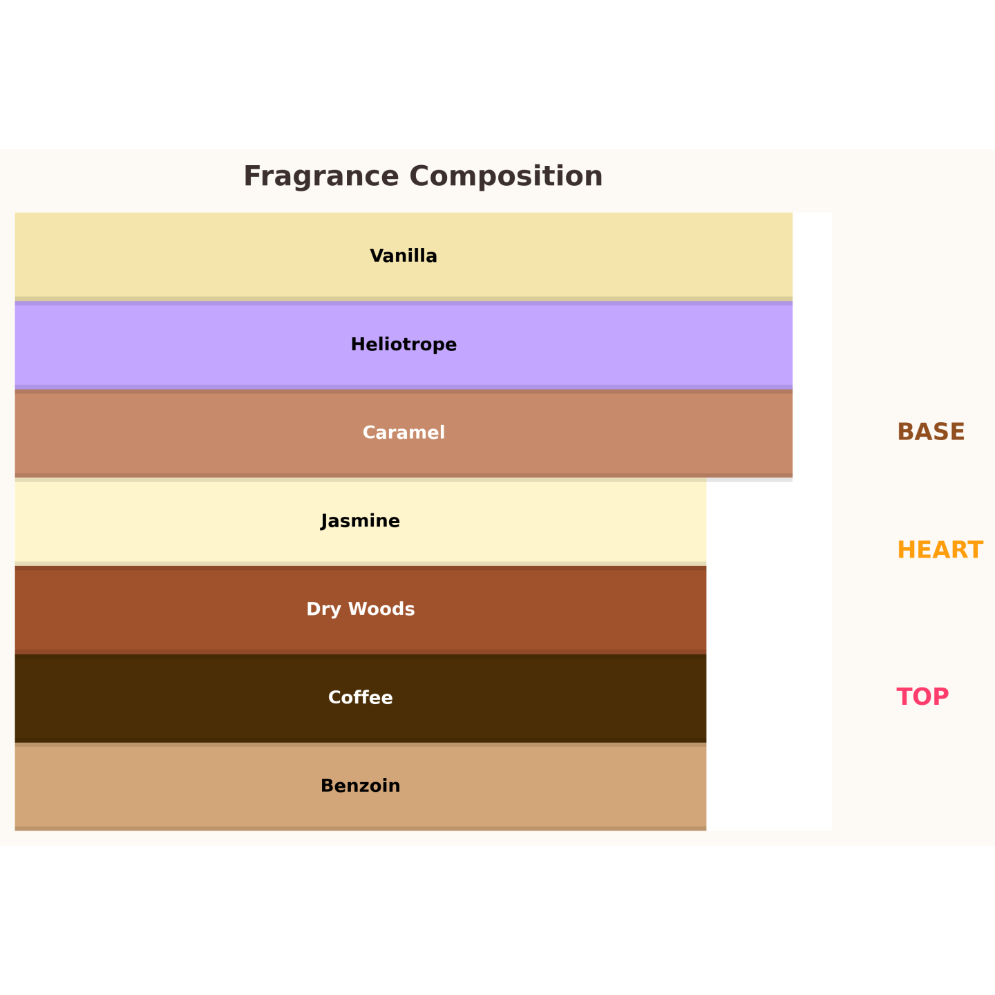 ✔ Heart: heliotrope, jasmine, benzoin