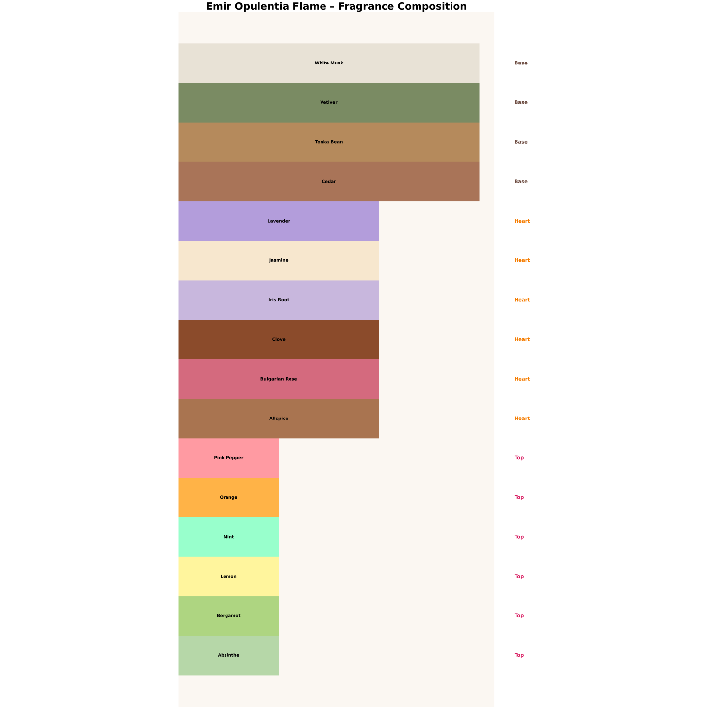 ✔ Heart: Lavender, Bulgarian Rose, Clove, Allspice, Jasmine, Orris Root
