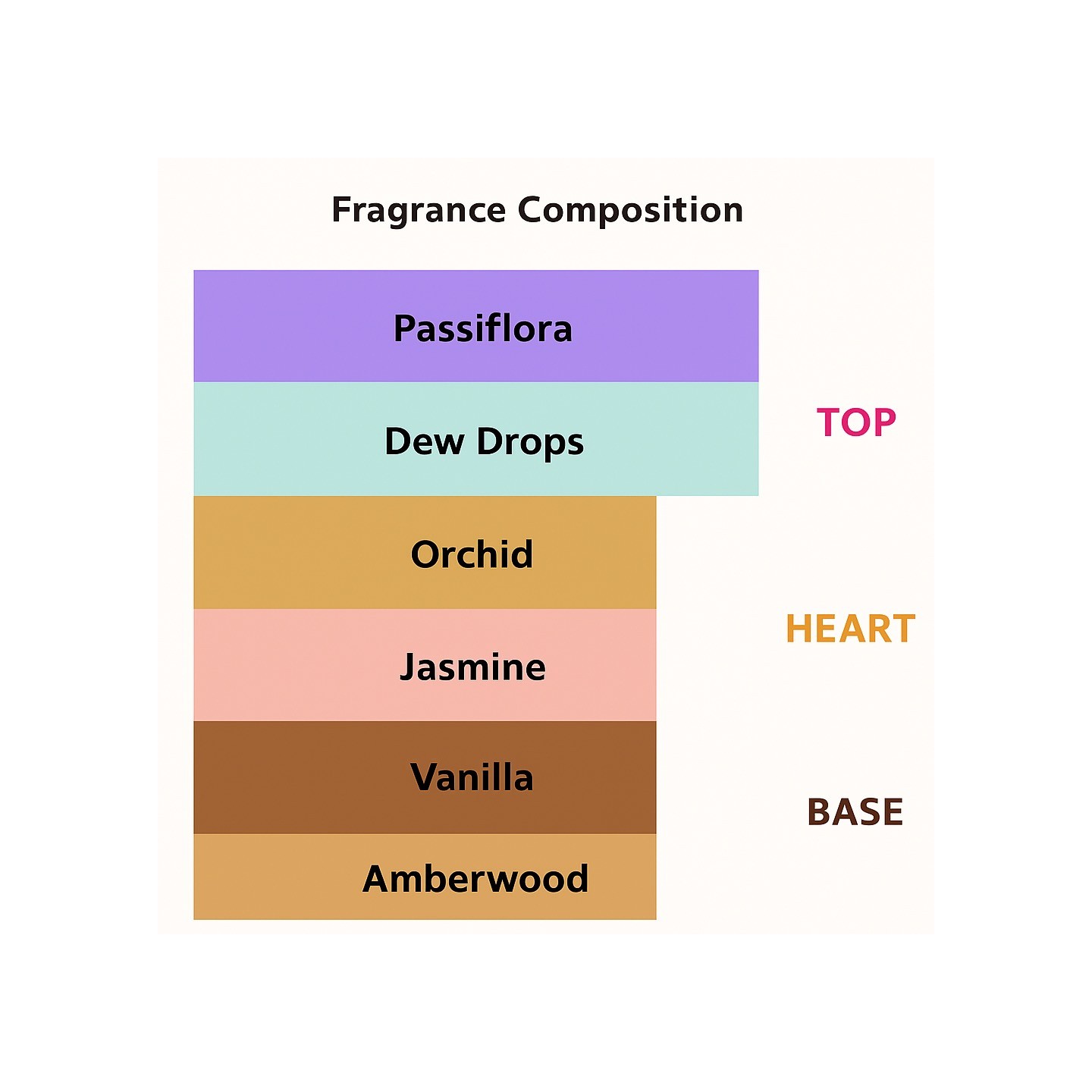 Aplikuj zapach z odległości 10–20 cm na czystą, suchą skórę. Nakładaj na punkty tętna (nadgarstki, szyję, dekolt, zgięcia łokci i kolan). Nie pocieraj – pozwól zapachowi rozwijać się naturalnie, warstwa po warstwie.