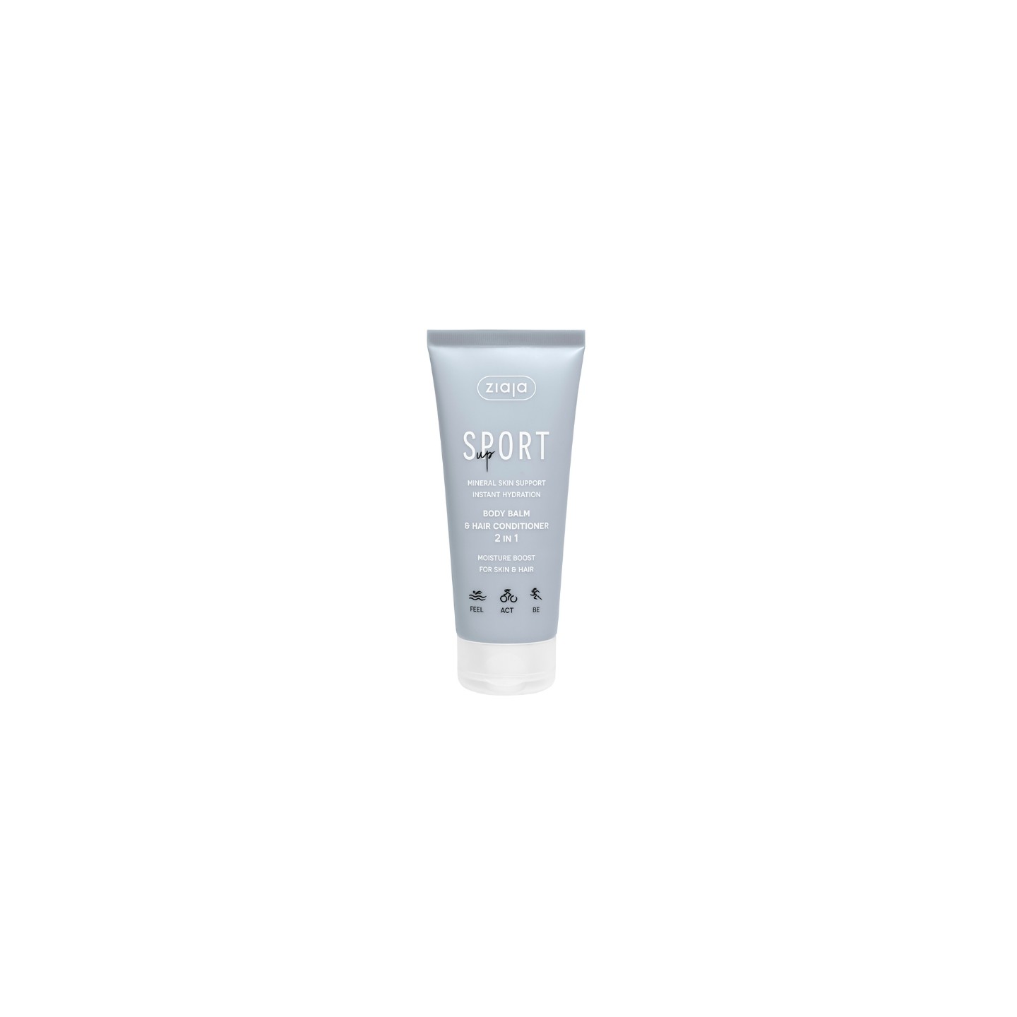 Ziaja Sport Up 2w1 to funkcjonalny kosmetyk do codziennej pielęgnacji – nawilżający balsam do ciała i kondycjonująca odżywka do włosów w jednym. Oparty na formule wspierającej NMF (naturalny czynnik nawilżający), produkt zapewnia skórze i włosom natychmiastowe nawilżenie, miękkość i zdrowy wygląd – bez obciążania. Idealny dla osób aktywnych i ceniących minimalizm w pielęgnacji. Produkt wegański i biodegradowalny, zgodnie z wytycznymi OECD.