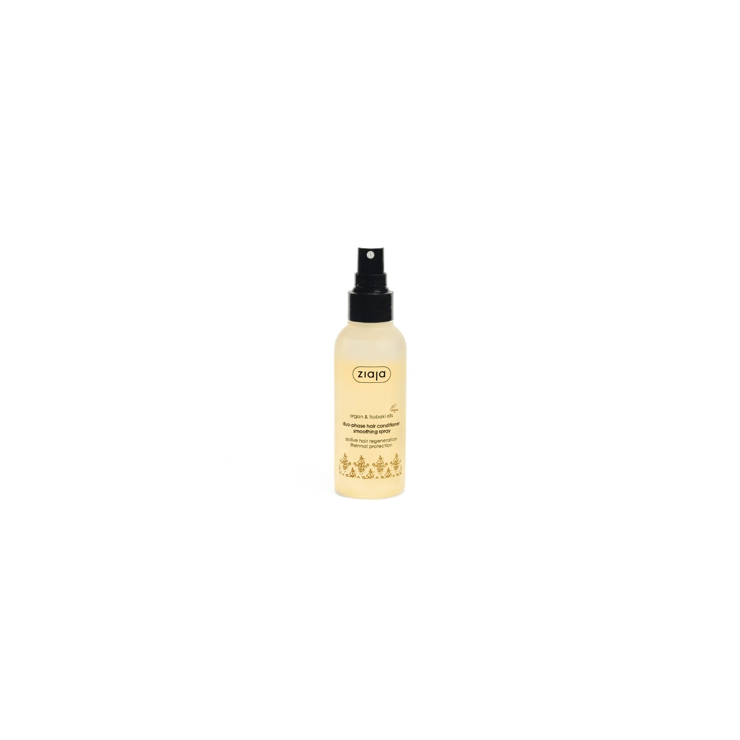 Ziaja Argan dwufazowa odżywka w sprayu wygładza i regeneruje włosy. Nadaje blask, chroni przed ciepłem, nie obciąża. Produkt wegański.