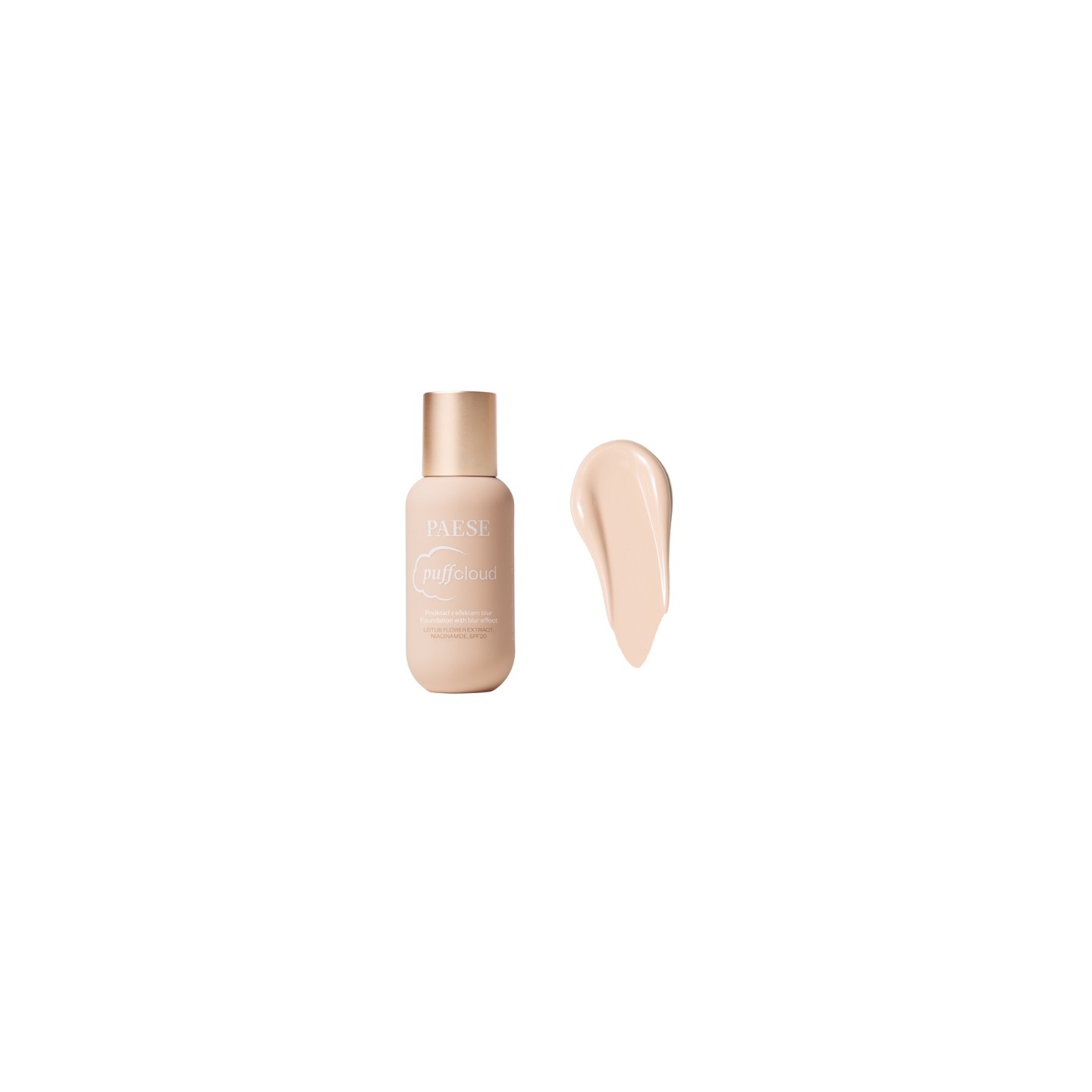 Lekki podkład z efektem blur, satynowe wykończenie, średnie/budowalne krycie, niacynamid, ekstrakt z lotosu, SPF 20.