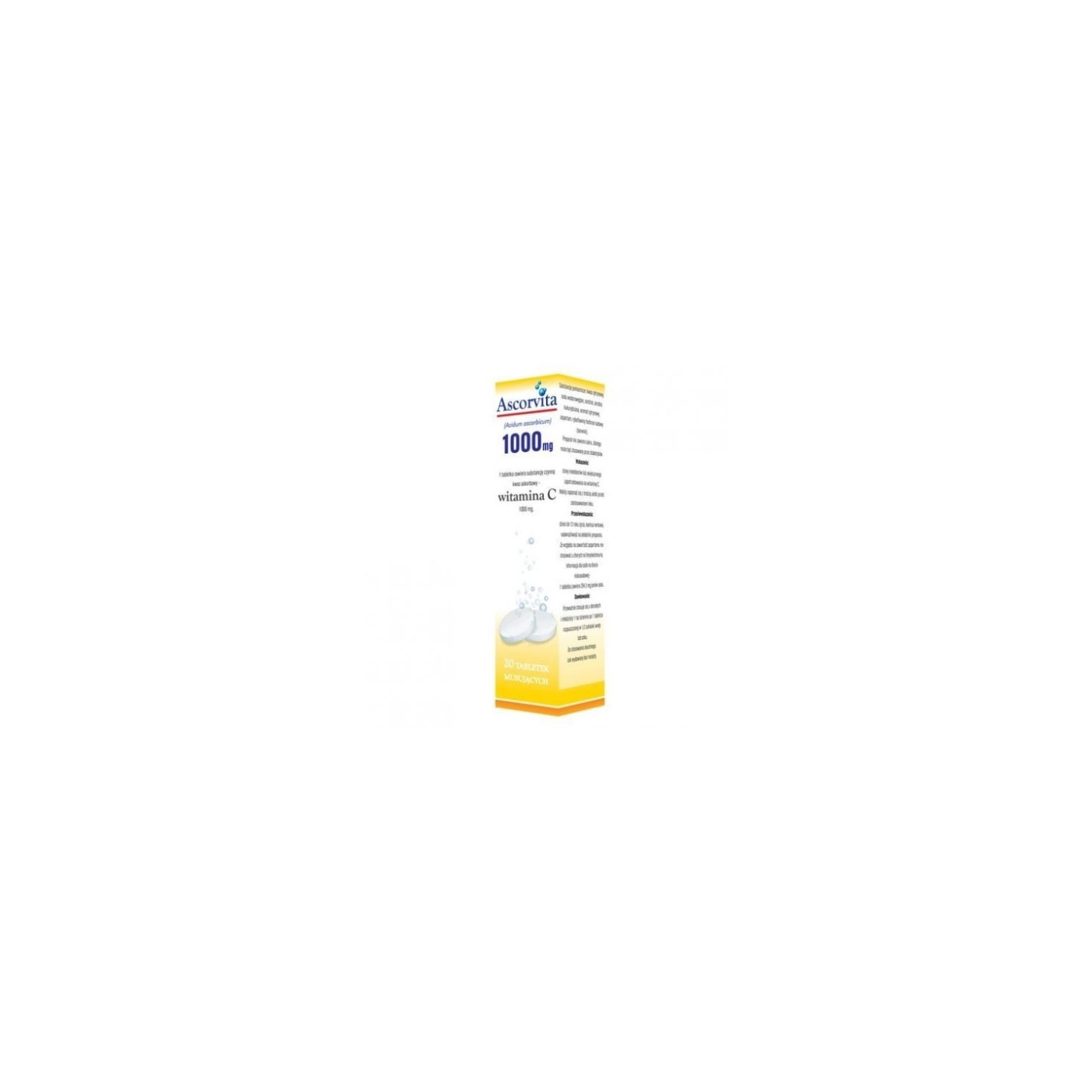 Ascorvita 1000 mg to suplement diety w postaci tabletek musujących, zawierający wysoką dawkę witaminy C. Preparat przeznaczony jest do uzupełniania codziennej diety w witaminę C, która odgrywa istotną rolę w prawidłowym funkcjonowaniu układu odpornościowego. Witamina C pomaga w ochronie komórek przed stresem oksydacyjnym, wspiera produkcję kolagenu oraz przyczynia się do zmniejszenia uczucia zmęczenia i znużenia. Musująca forma tabletek zapewnia szybkie rozpuszczanie oraz wygodne i przyjemne stosowanie. Opakowanie zawiera 20 tabletek musujących, idealnych do codziennej suplementacji, szczególnie w okresach zwiększonego zapotrzebowania na witaminę C.