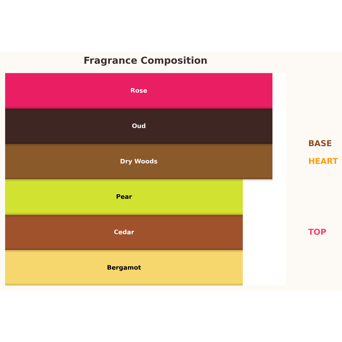 ✔ Czy zapach jest ciężki? Ma wyrazistą, orientalno-drzewną bazę, ale świeże otwarcie i róża dodają mu świetlistości i równowagi.