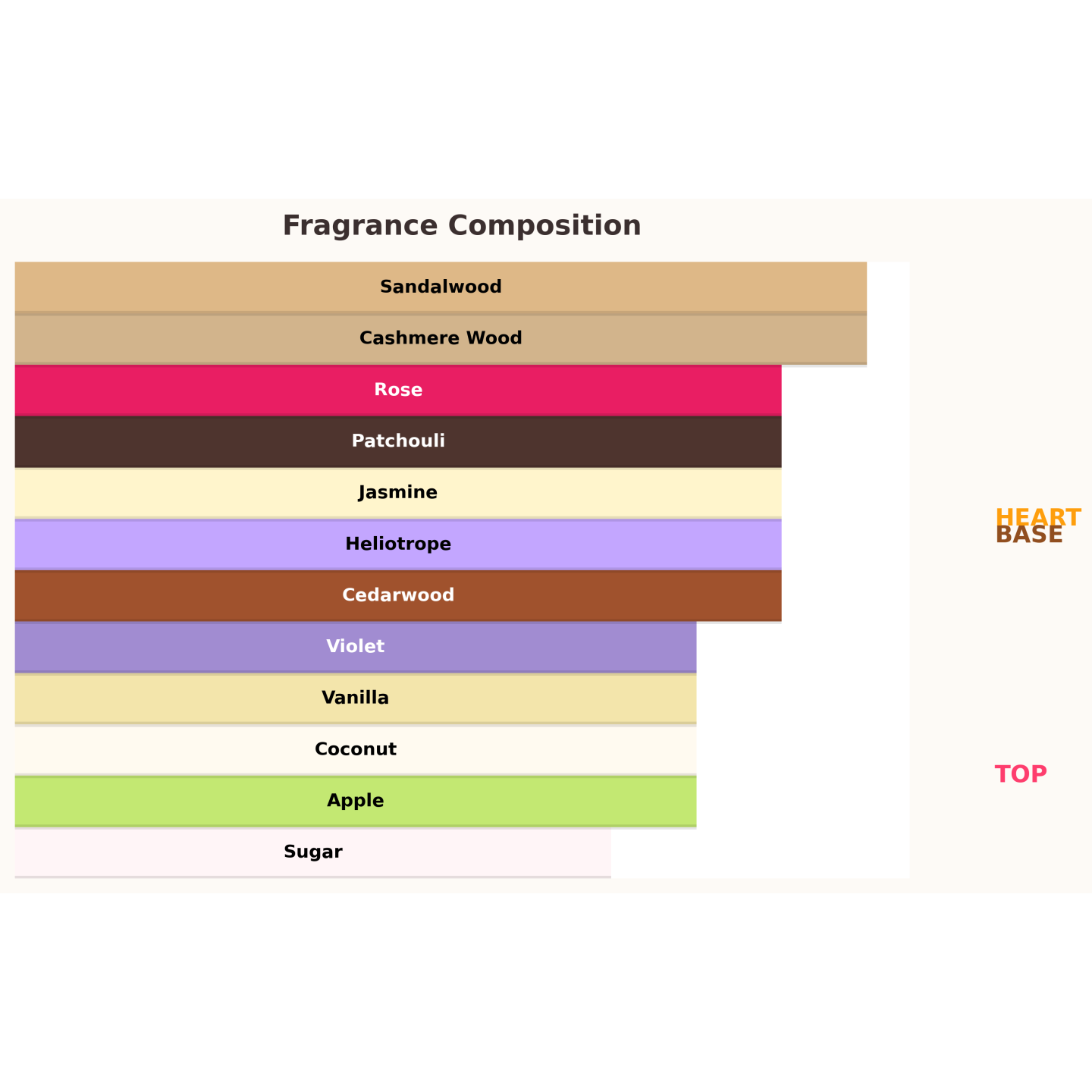 ✔ Baza: drzewo kaszmirowe, cedrowe, sandałowe, paczuli, wanilia, cukier