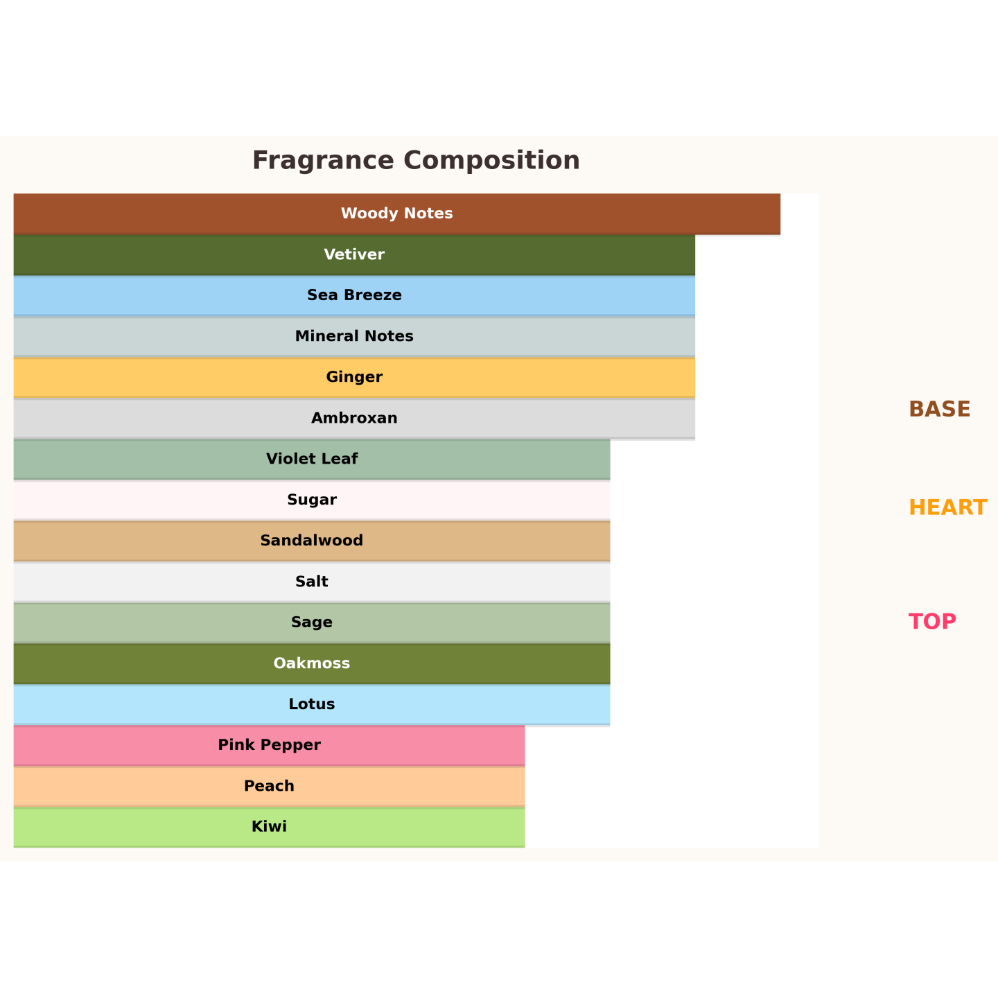 ✔ Czy jest słodki? Ma słono-świeże otwarcie i ciepłą, ambrową bazę – słodycz zbalansowana mineralną świeżością.