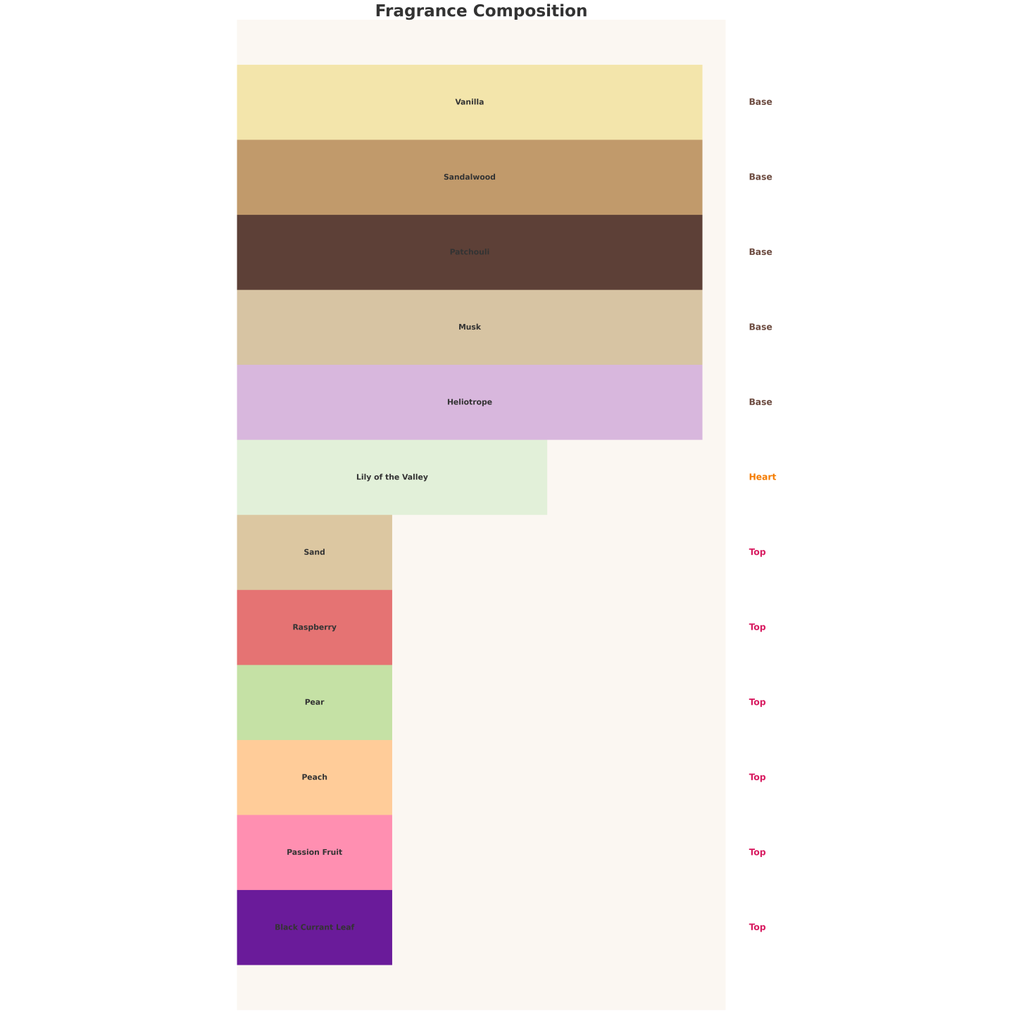 ✔ Głowa: Marakuja, Brzoskwinia, Gruszka, Malina, Liść Czarnej Porzeczki, Piasek